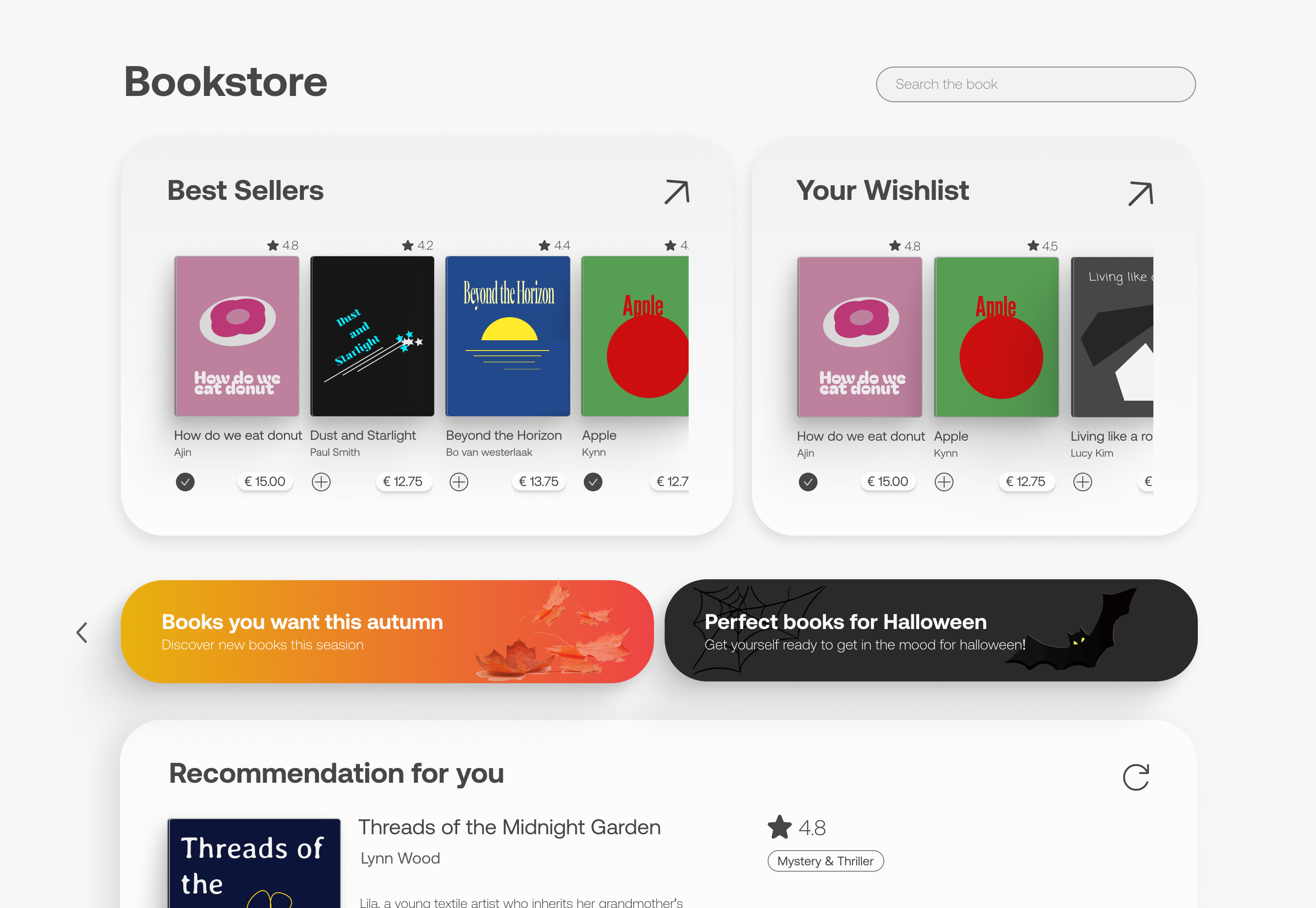 - Customized bookstore