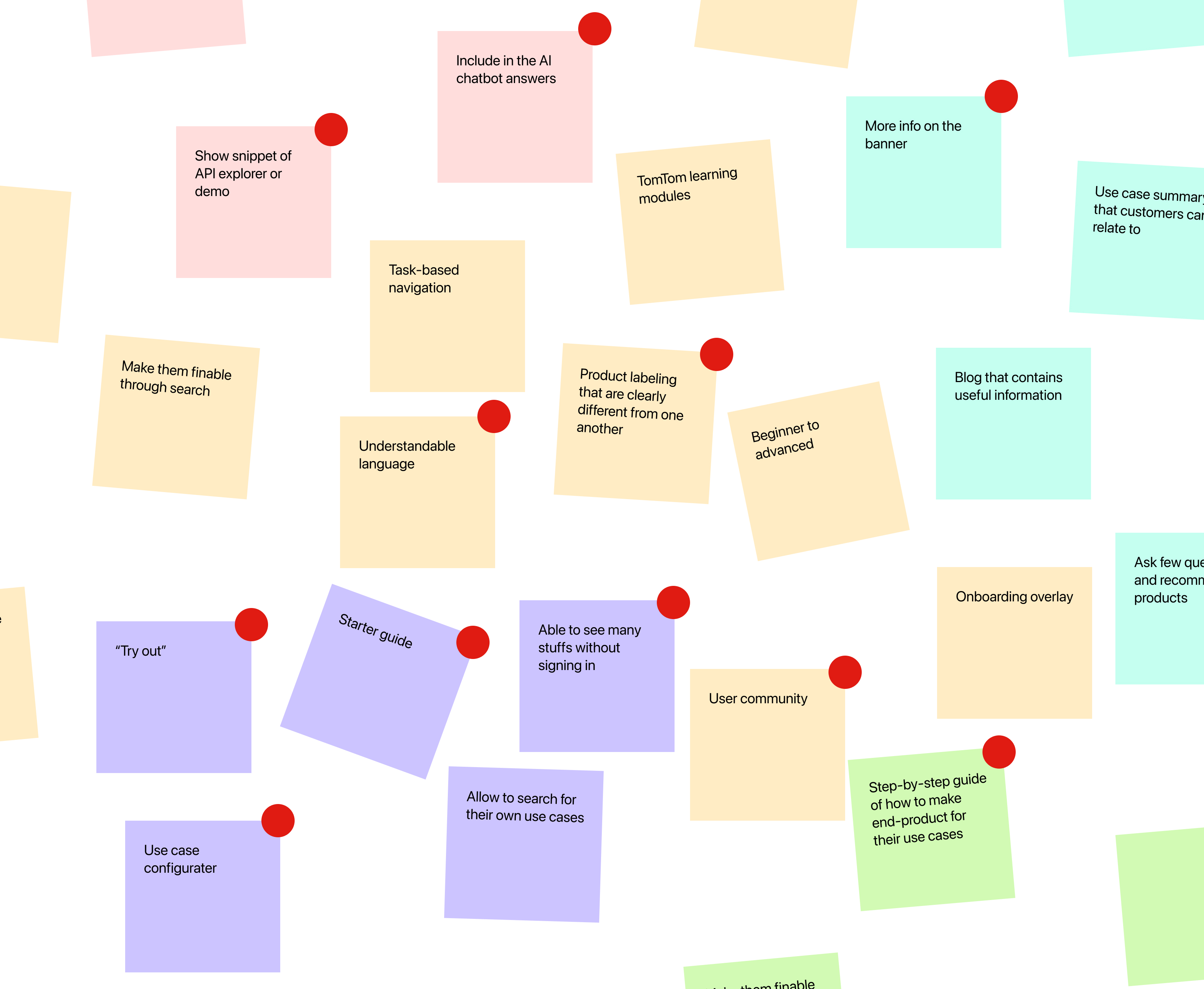I conducted a qualitative study over a 3-week period to understand the early stage of technical buyer journey for TomTom's documentation website.