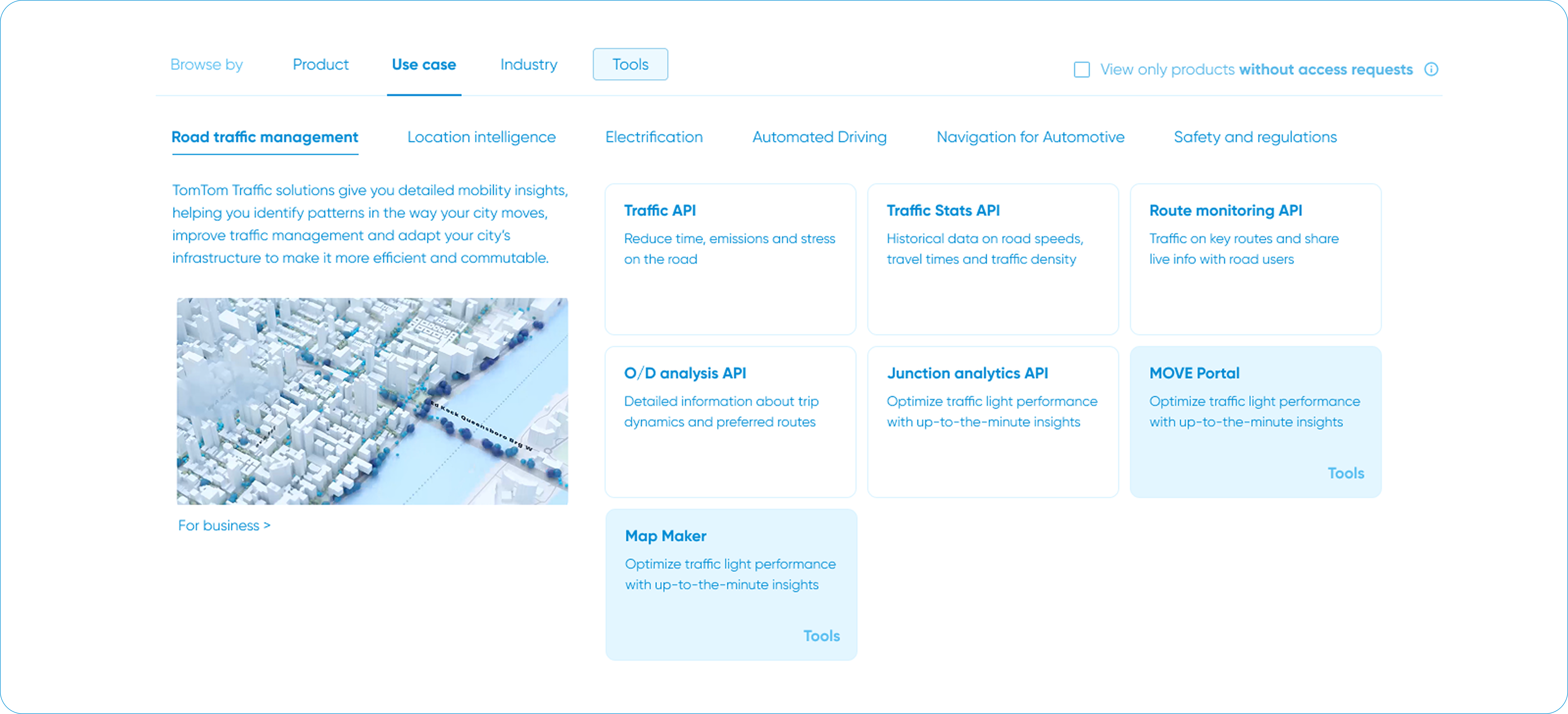 As part of the initiatives for the scalable digital solutions, TomTom recently has been laying a strong focus on online platforms such as marketing or documentation websites, that showcase the product offerings, enabling customers to discover, evaluate, and integrate products more efficiently.